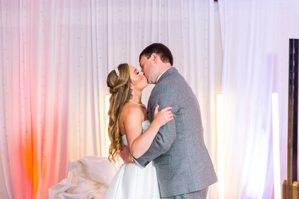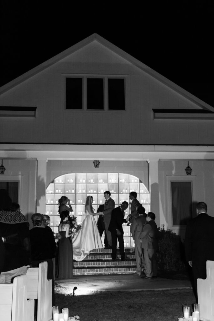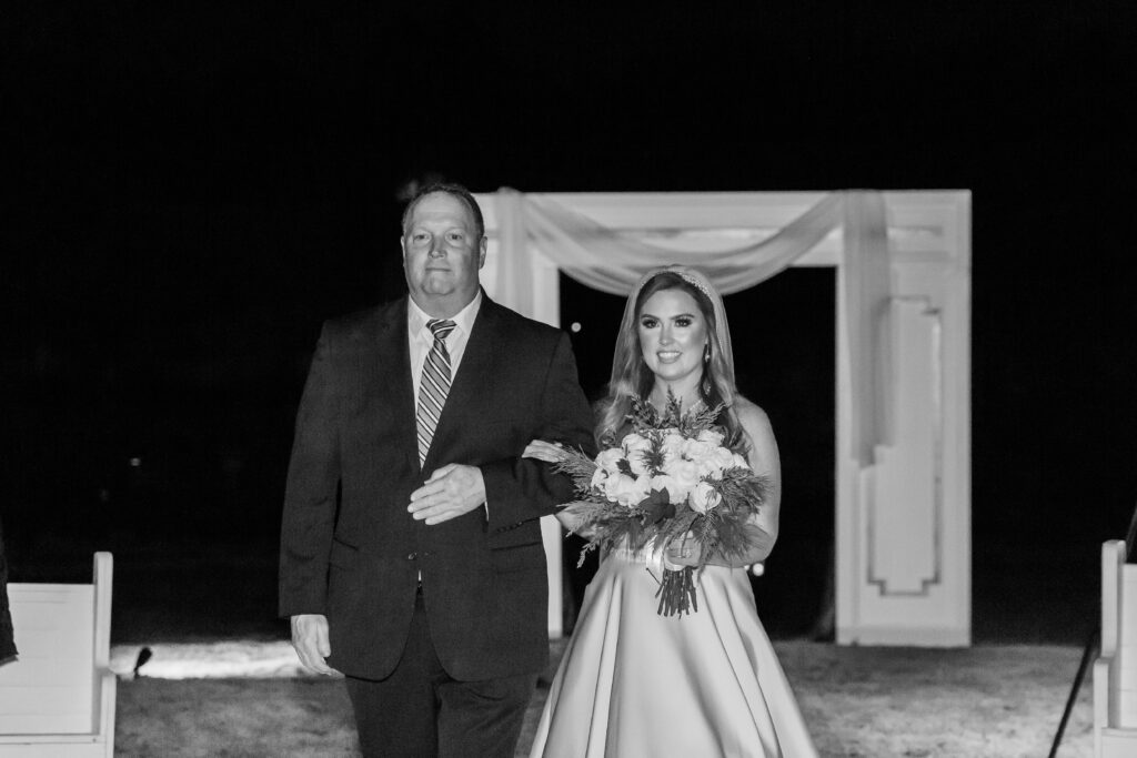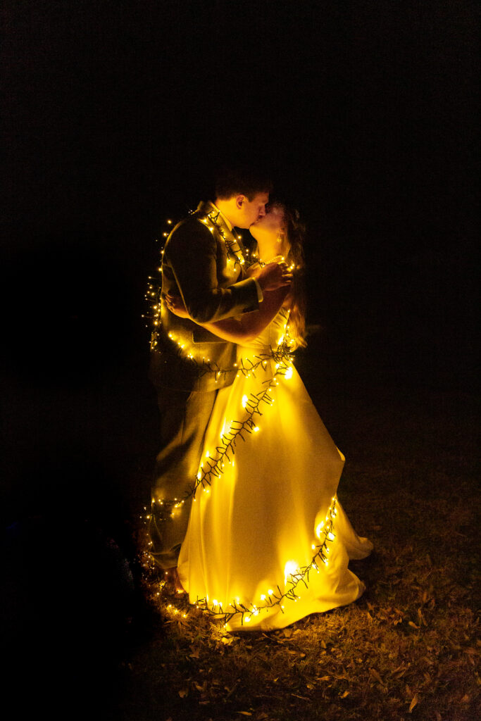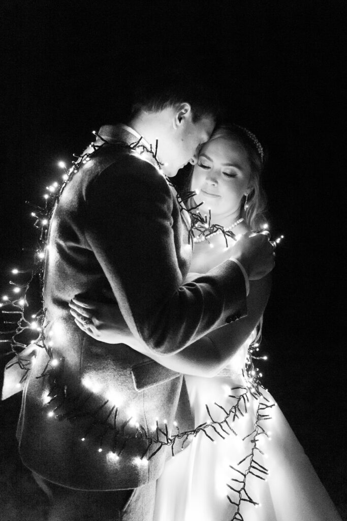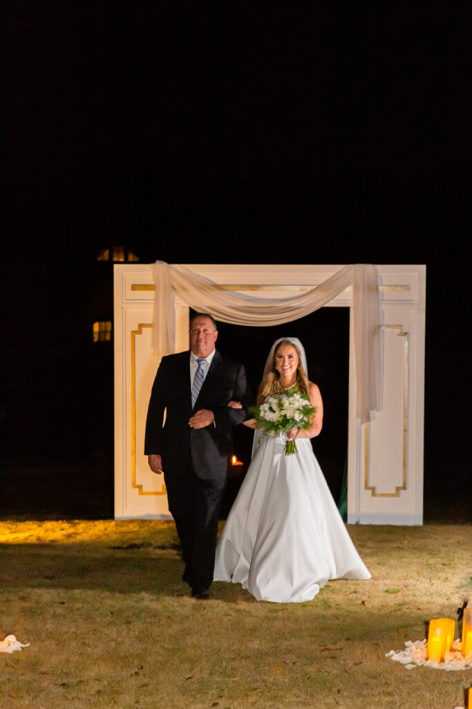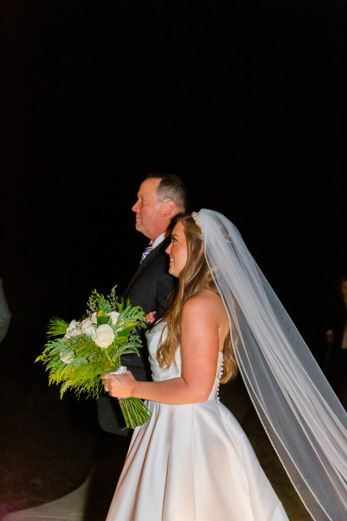 Andrew and Madison’s early December wedding was truly what winter dreams were made of! I remember my first call with Madison when she shared her vision for the day, and my jaw instantly hit the floor! A candle wall would act as their backdrop for the ceremony, a canopy of lights would welcome guests to their seats for the reception, and there would be a gorgeous glowy detail at every corner. And can I just say… the vision truly came to life!! What makes it even more special, is that both of Madison’s parents were the ones who worked on almost all of it! Didn’t they do an amazing job??