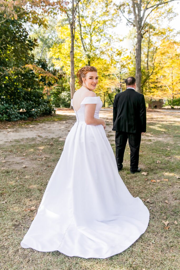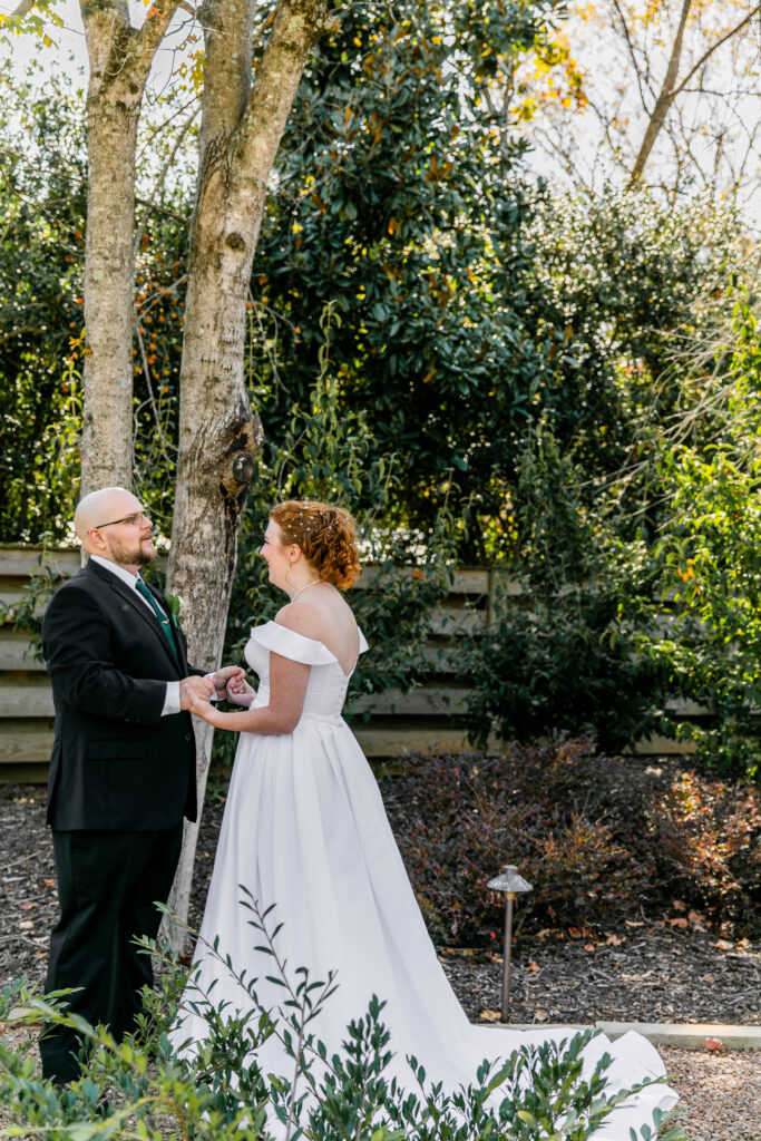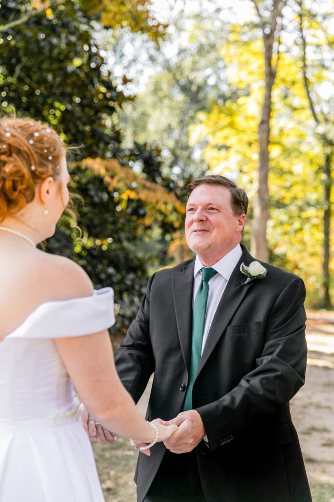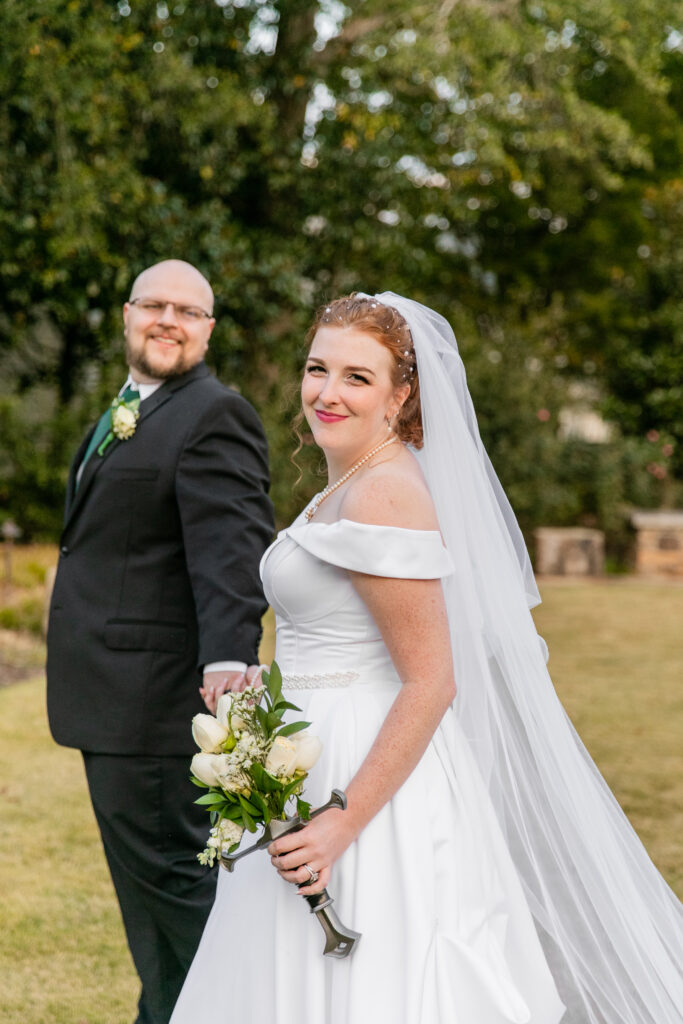 Casey and Kenzie’s wedding took place on a beautiful October day at the Reed House in Smyrna, and it was absolutely perfect! I also went to school with Kenzie, so this wedding was even more special to capture! I was so incredibly honored to get to have a front-row seat to seeing my sweet friend marry the man of her dreams! The fall weather was a dream, and they had such a stunning outdoor ceremony in front of the venue’s gazebo. The details of the day were also so fun! It was such a classy color palette with creams and dark green, and I also loved their customized LEGO people as their cake topper!
