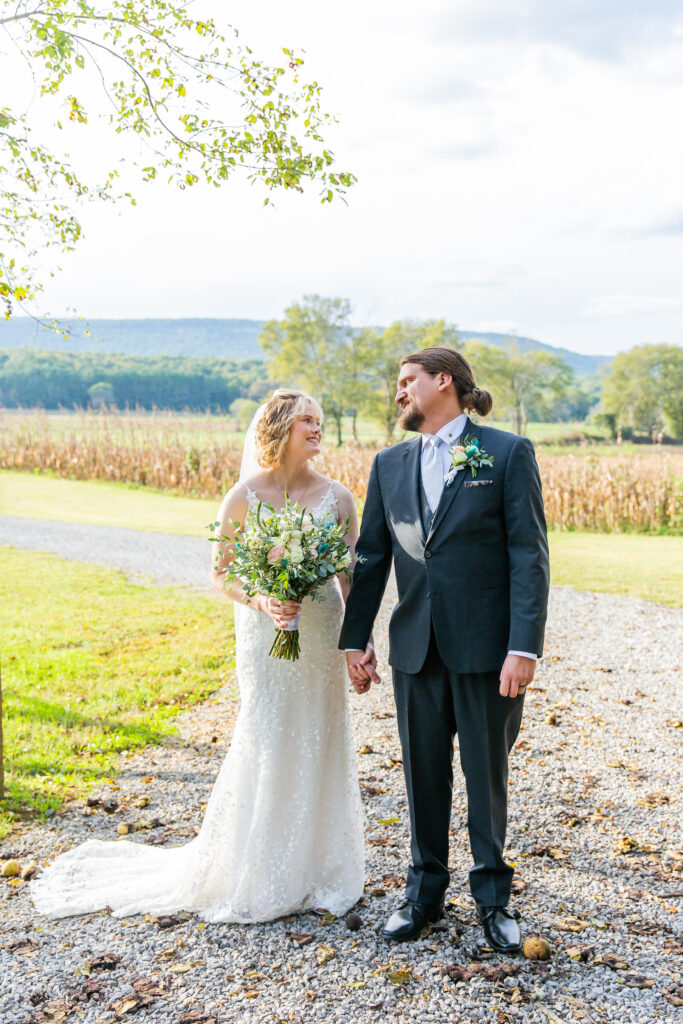 What a sweet day this was! Patrick and Megan had such a dreamy October wedding, with absolutely beautiful fall weather to match! This venue also had gorgeous mountain views, and it was truly such a “picture perfect” day! One of my favorite details about this day was the bride and groom’s wedding cakes! These two absolutely love animals, and each have several pets, and decided that they wanted to incorporate some of them into their cakes! How cute is that!